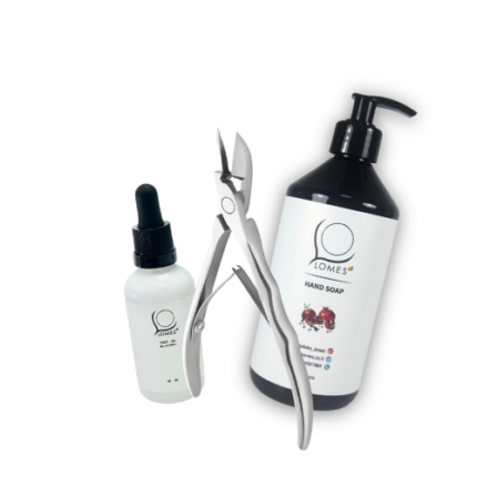 ערכה לטיפוח הציפורניים ברגליים (שמן רגליים, סבון וצבת לגזירת ציפורניים)