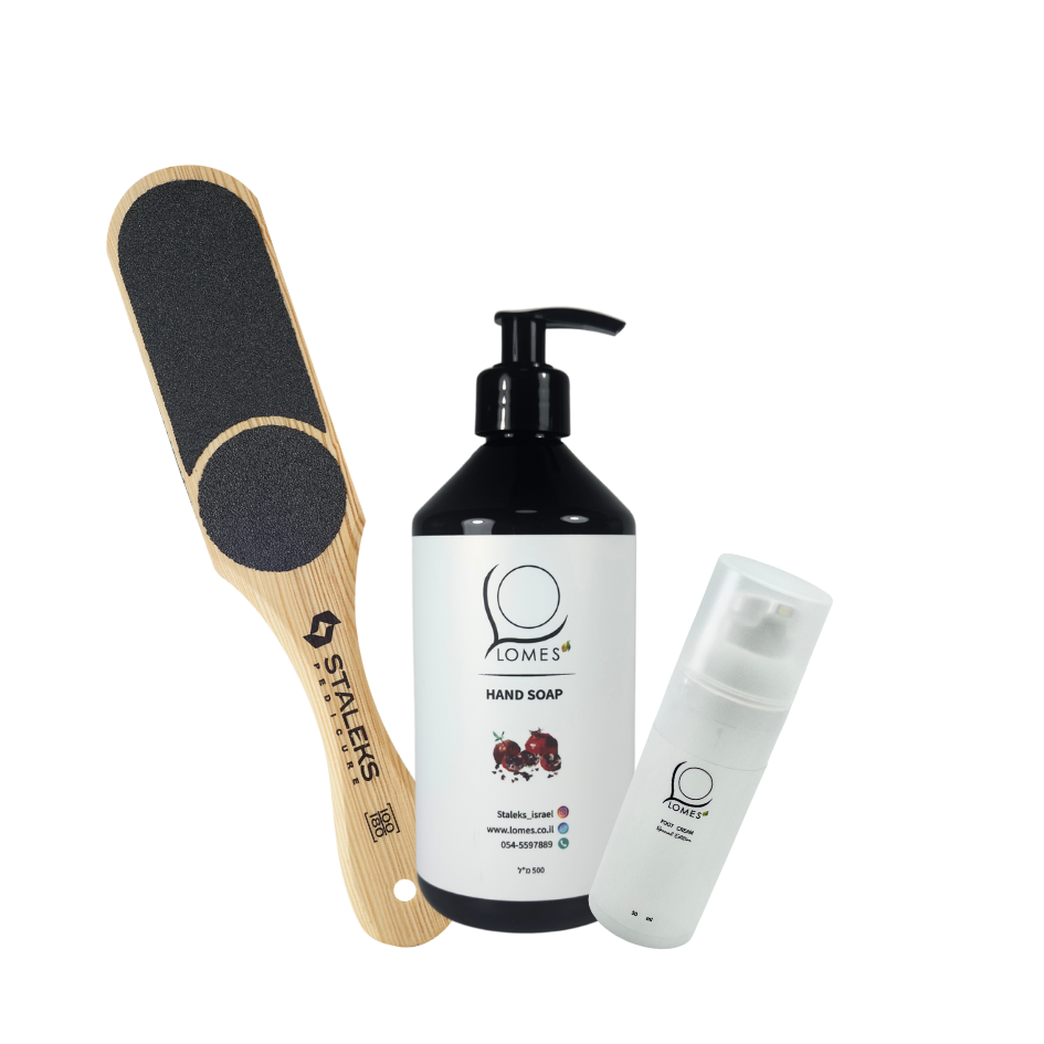 ערכת פדיקור ביתית (פצירה לכף רגל, קרם סדקים וסבון)